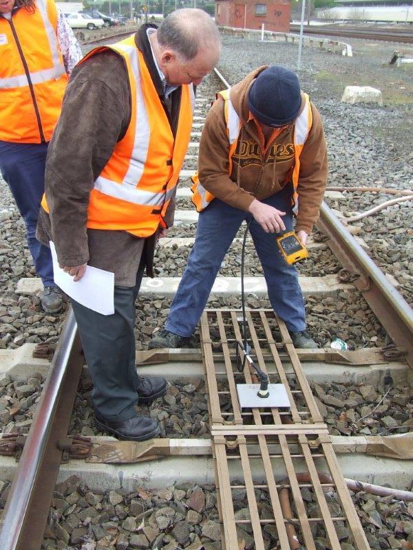 P Jarvis and trainee testing equipment